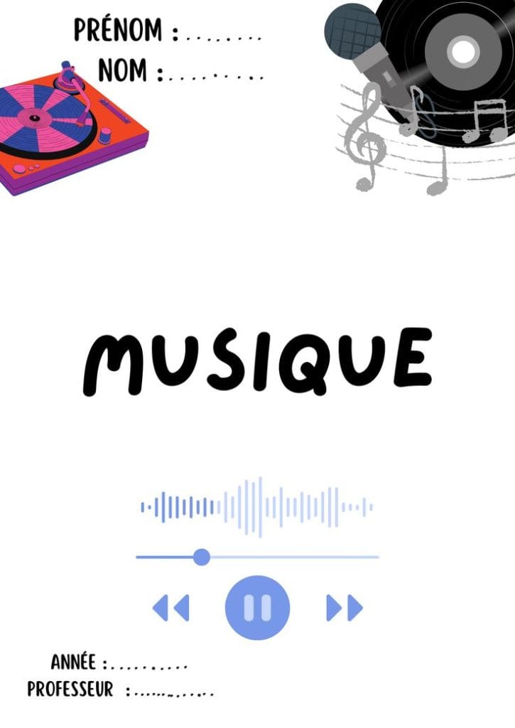 Une page de garde Musique est idéale pour présenter des cahiers, dossiers ou projets scolaires liés à cette matière artistique. Elle doit refléter la créativité et l’univers musical tout en restant claire et professionnelle. Les élèves peuvent utiliser un modèle déjà prêt ou créer leur propre version en ajoutant des touches personnalisées.