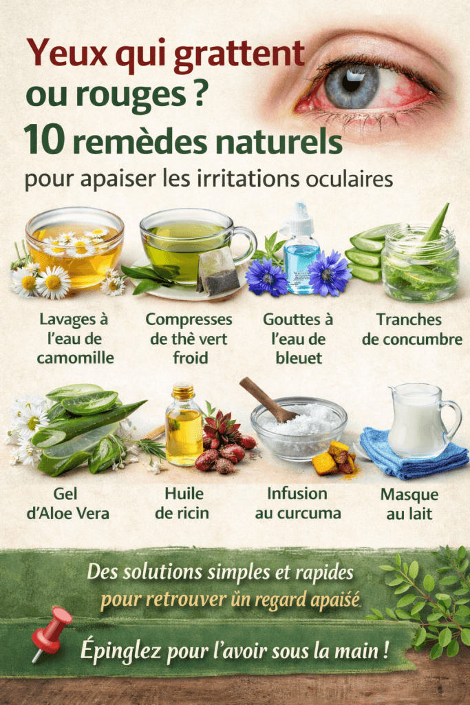 Avant d’utiliser des gouttes décongestionnantes (qui peuvent à la longue créer un effet rebond), voici 10 remèdes naturels pour apaiser vos yeux et retrouver un regard clair.